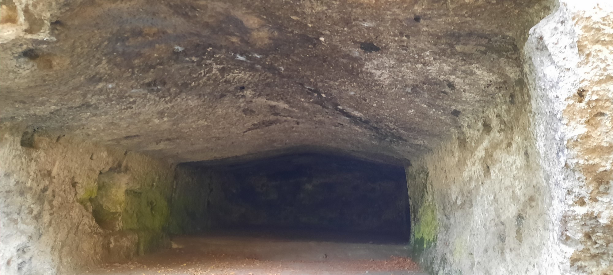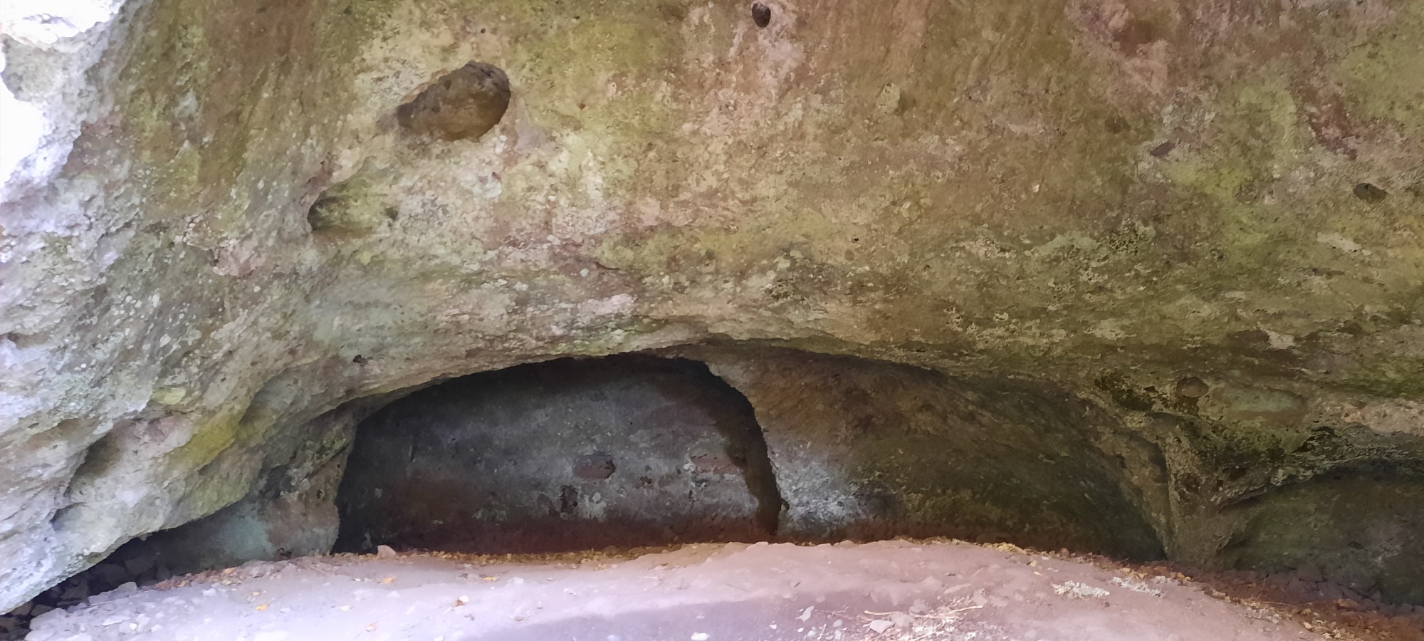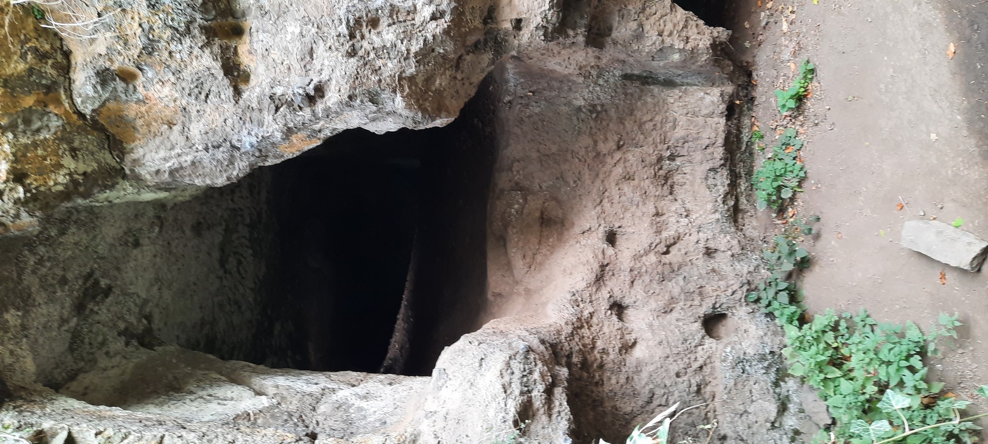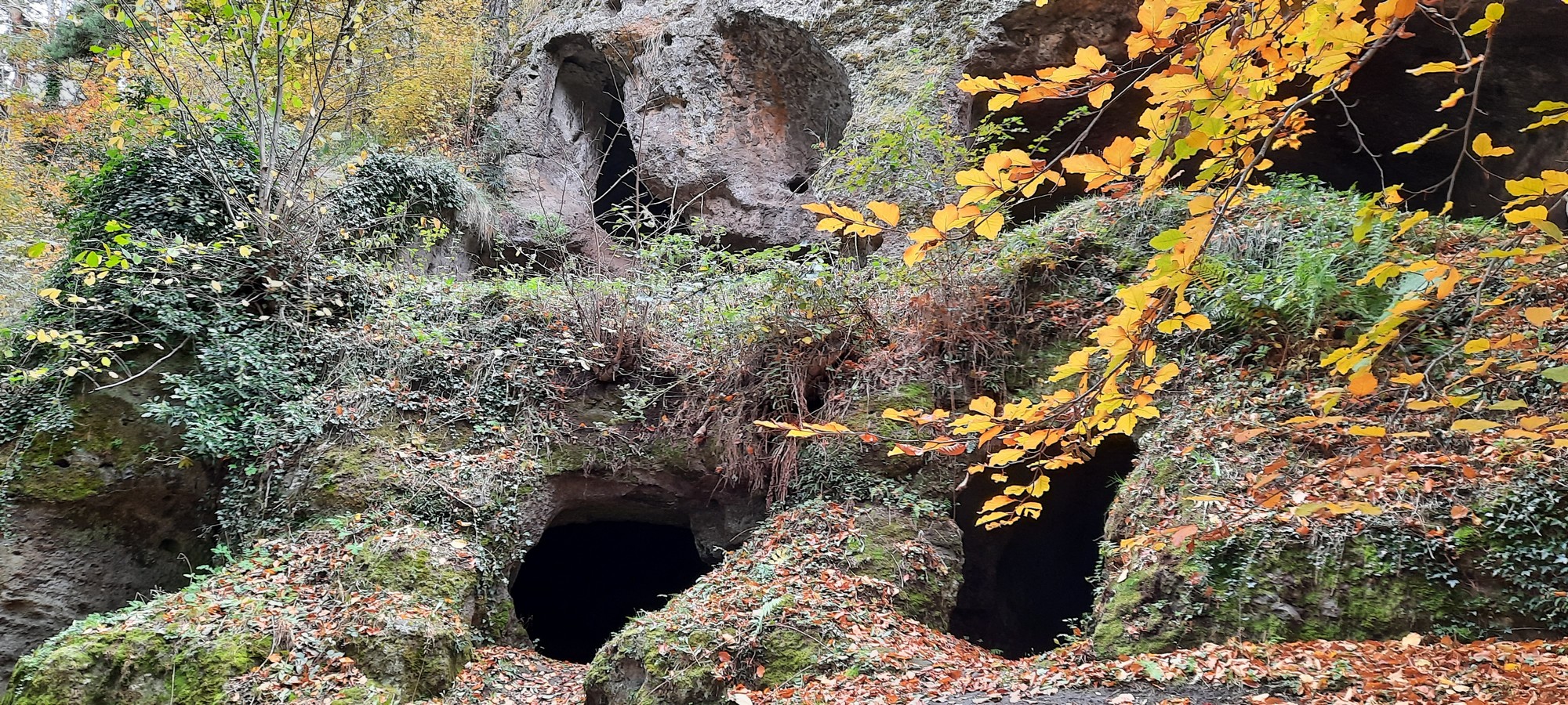Cet habitat permanent du XIIe au XIVe siècle a été aménagé dans un tuf volcanique contenant de nombreux blocs projetés par les violentes éruptions successives.