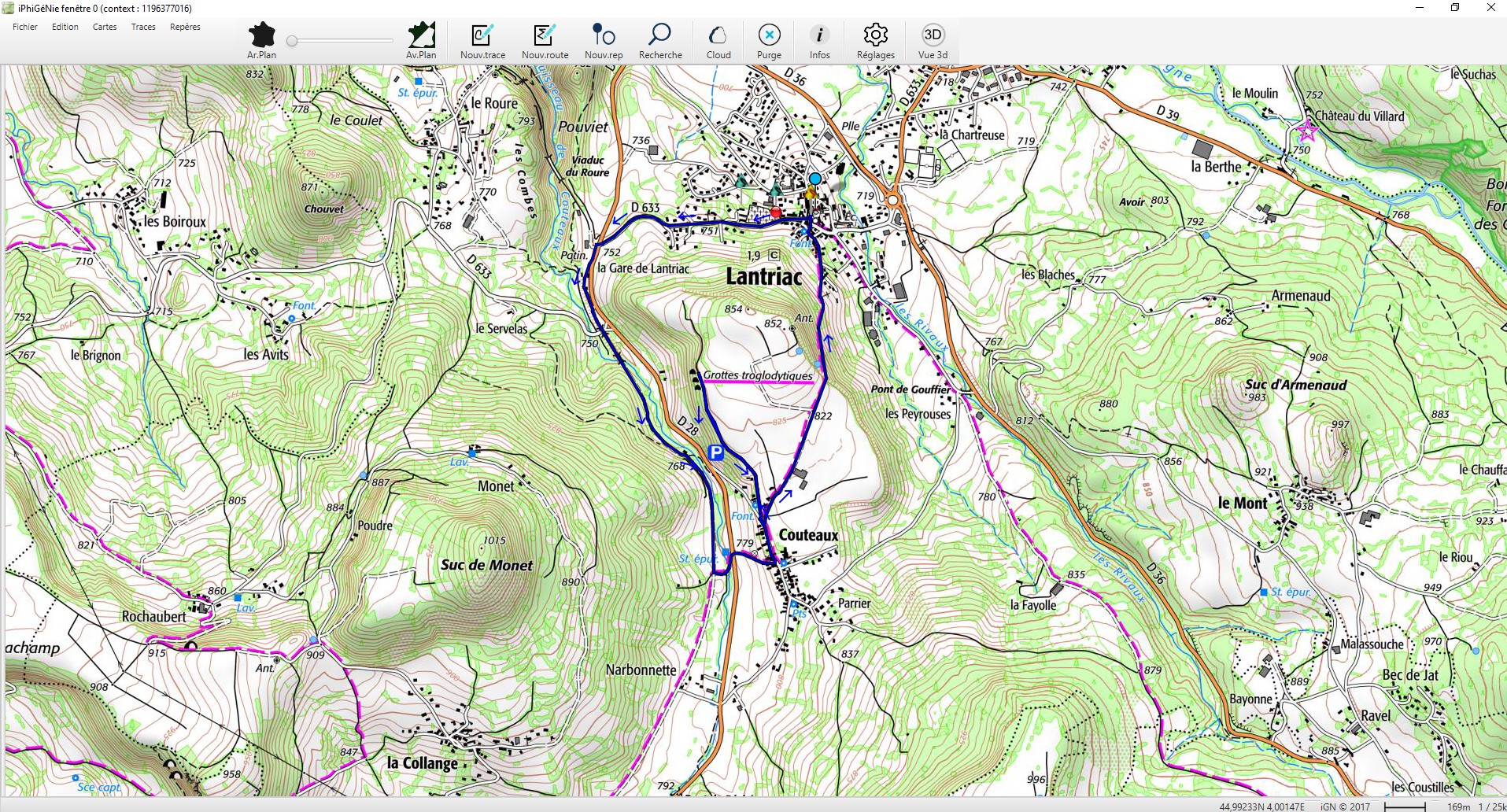 Le circuit au départ de Lantriac passe par la Gare - Patinoire puis utilise la Transcévenole jusqu'à hauteur du village de Couteaux.